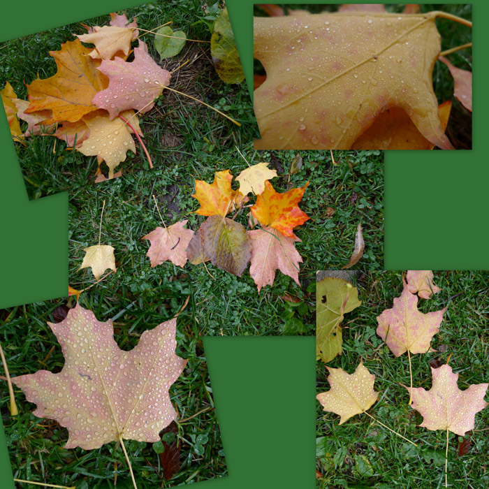 Yesterday was an overcast rainy day and the wind created some beautiful leaf collages. The colors definitely brightened my day.