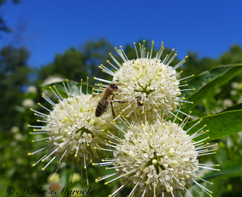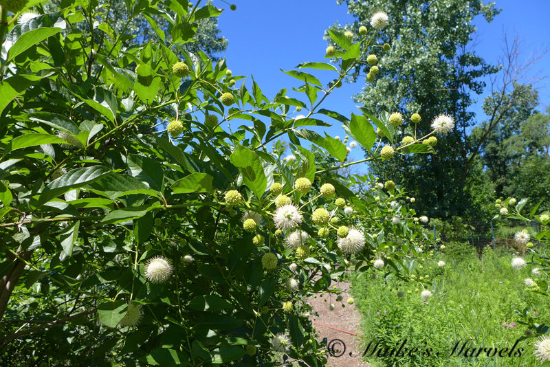 My botanist friend says this is the button bush (Cephalanthus occidentalis).