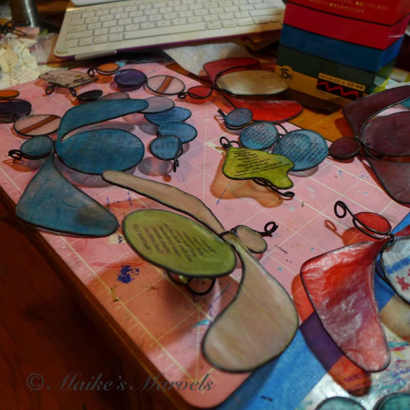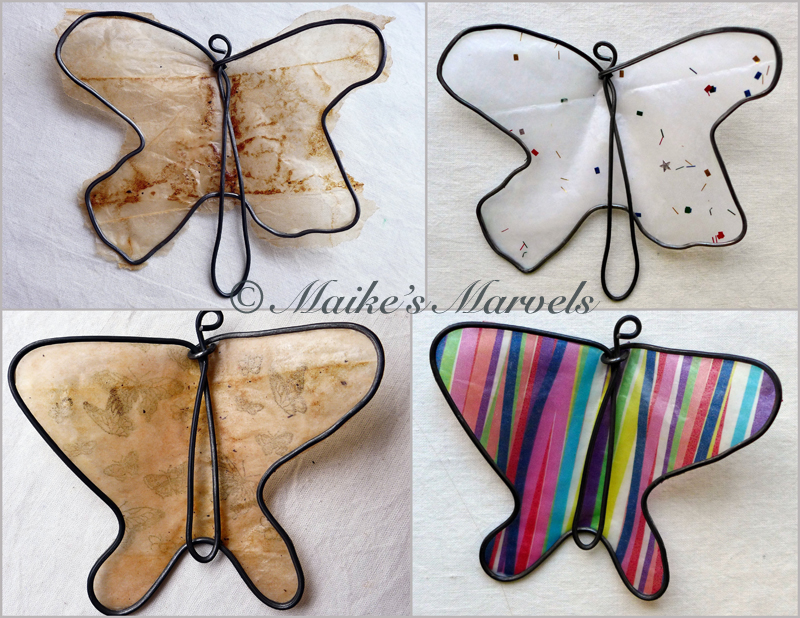 The butterflies I made for the Swarm exhibit felt drab against a tree, so I gave two of those a makeover.