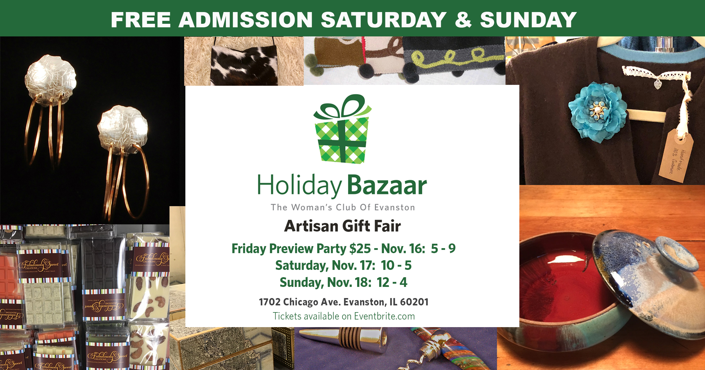 The Woman’s Club of Evanston Bazaar is Friday 4-9 pm, Saturday 10 am – 5 pm and Sunday noon to 4 pm.