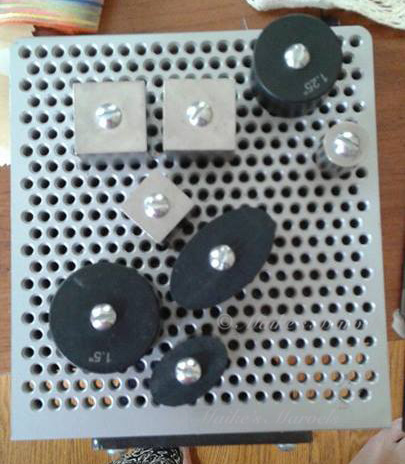 For this show submission, I made a whimsical wall hanging. I was inspired by Brenda’s Now That’s A Jig! Shapes and put a bunch onto the Jig, initially thinking I would work with a 6 x 6 shadowbox.