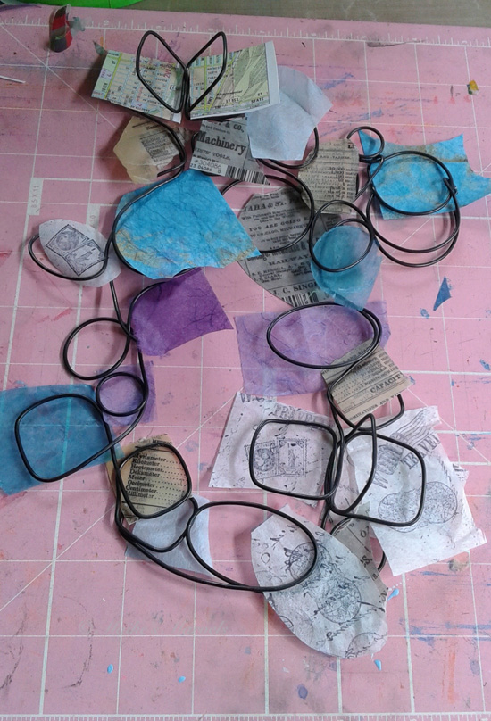 With big (to me) pieces like this, the wire isn’t always flush. It is a delicate balance of making sure the forms will be straight enough to hold the paper and also keeping in mind how the piece will hang in the end.