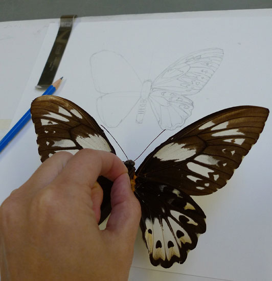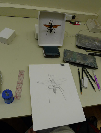 After lunch I was told to go big or go home, so I had to pick a larger butterfly. The reason I pick lepidoptera for now is because one day of spontaneous drawing still takes a lot of brain-space for me. Knowing the anatomy of your model helps in that regard.