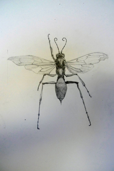 I was instructed to block it out and then focus on one wing. My eyes had trouble concentrating on the actual scallops of the wing vs. the brown scallopped pattern. It was an exercise in concentration and erasing.