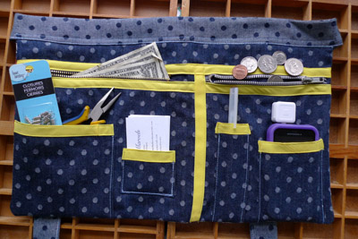 That afternoon a special envelope had arrived. I had looked for Money Aprons on Etsy and then found a tutorial by someone who created her own. Not being a good seamstress myself, I recruited my friend, who asked me what pockets I wanted, and then created a beautiful piece.