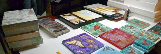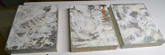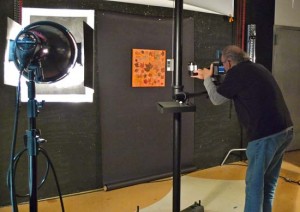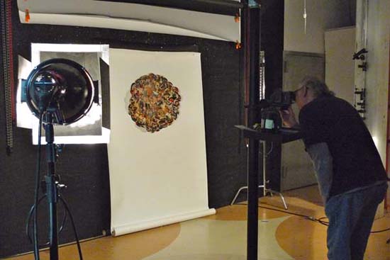 Art photographer Tom van Eynde was highly recommended for encaustic art, and on Saturday we met at his studio. Tom immediately sorted pieces by size and started snapping away. He is fast!