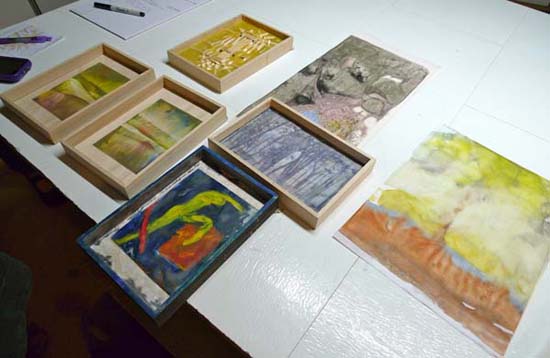 Bridgette has thick layers and and earthy color palette, and also brought an acrylic painting.