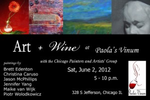 Meanwhile, my current art work will be on display June 2 at a small group show. Six Chicago Painters and Artists will bring their work to Paola’s Vinum for a one-evening pop-up. You can sip Spanish wines at the bar while perusing our work, and maybe taking some home (both art and wine) if you’re so inclined. More on that soon.