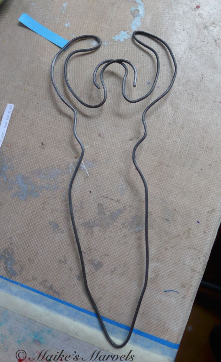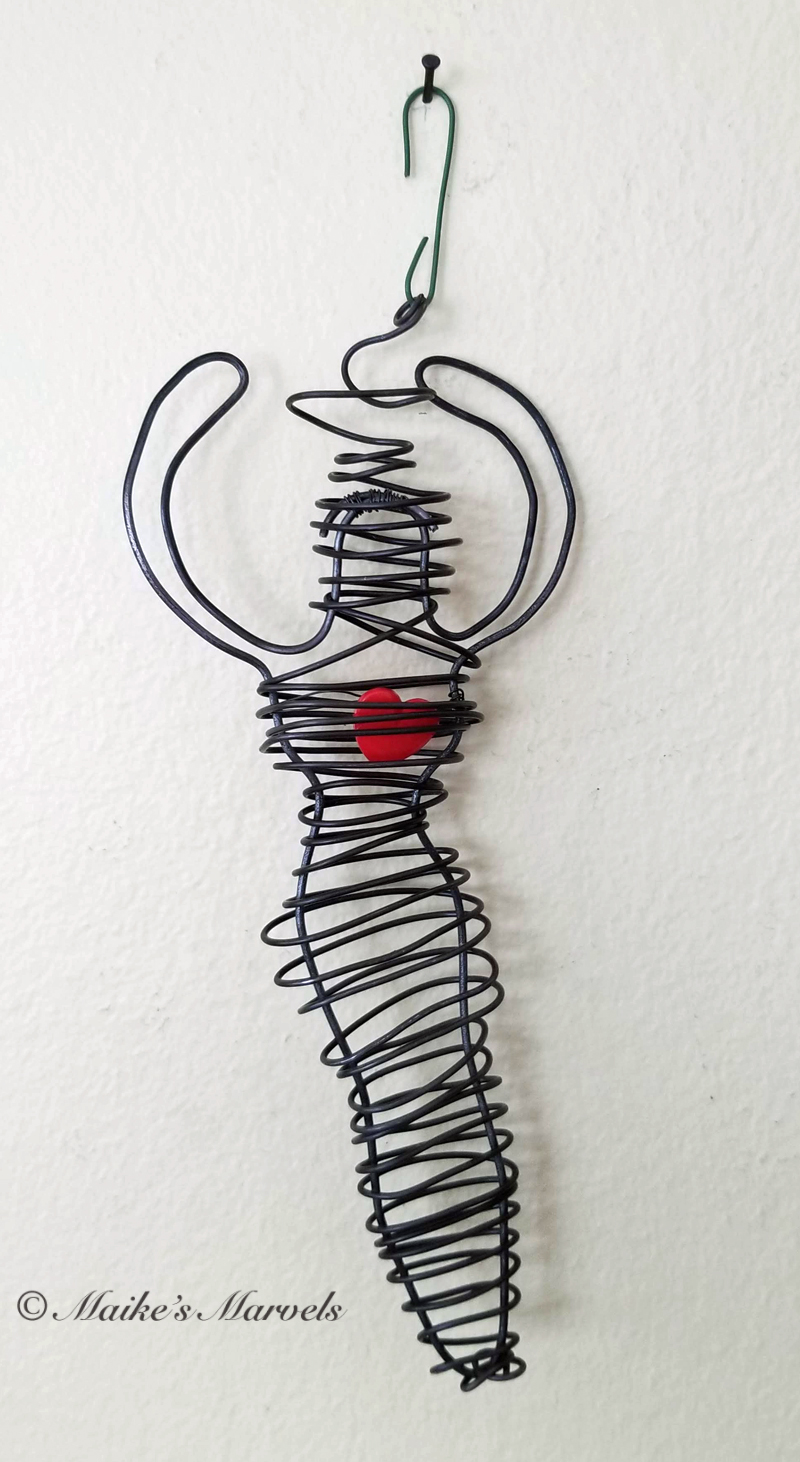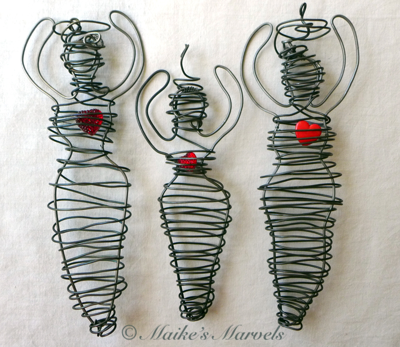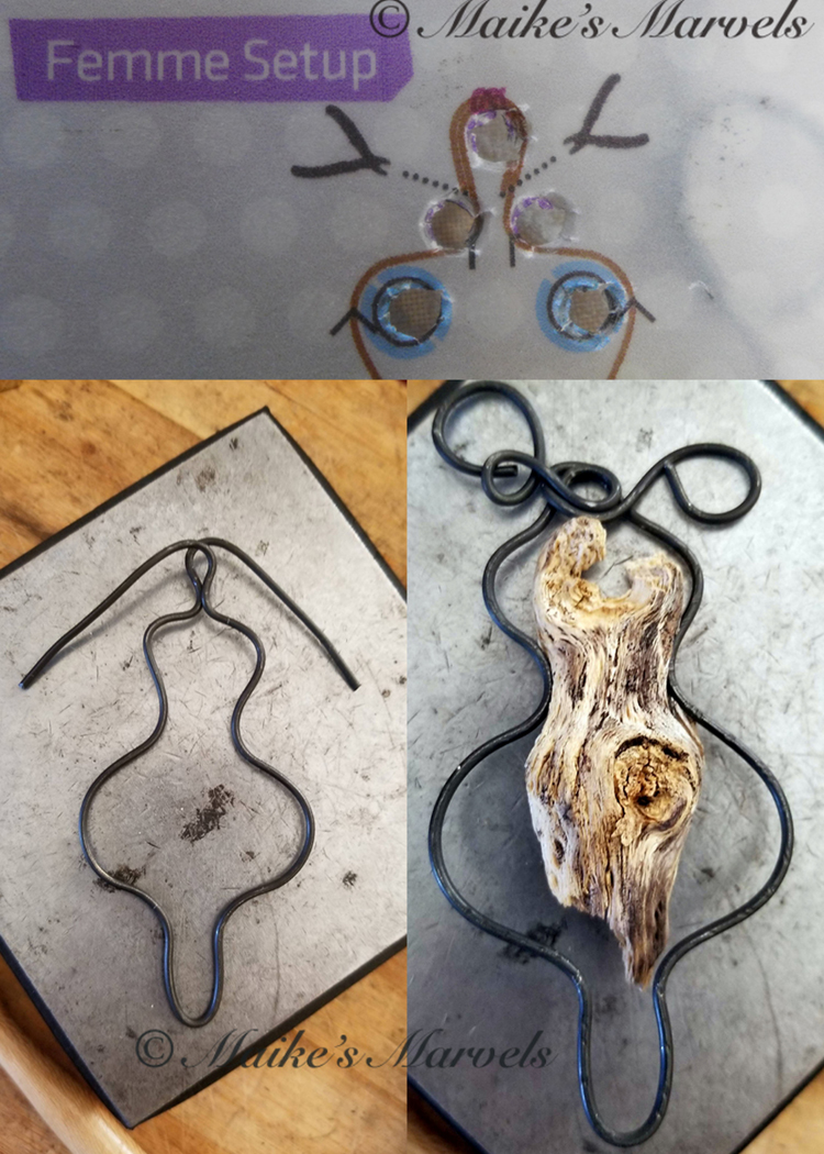 Mother Goddesses were revered for their reproductive capabilities, and our feminine creative power should not be perceived as a threat. The Spiral Goddess is an iconic form representing creative power, relating to both the feminine reproductive system and its cycles, but also pertaining to the energy flow associated with the chakras. I thought she was an appropriate symbol to create for this event. I made her from steel, and rather than placing a spiral in her abdomen, I had the steel wire spiral up along her whole body, culminating in her halo.