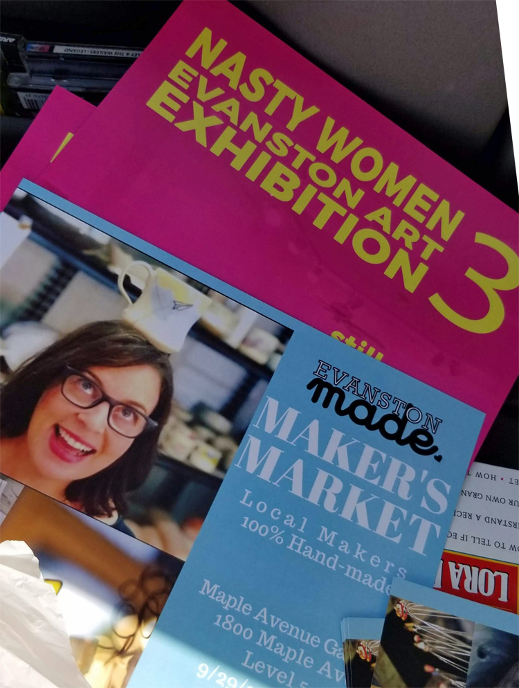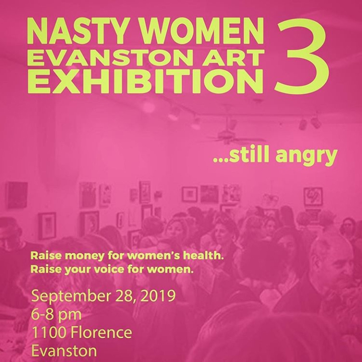 Join us September 28 from 6-8 pm at 1100 Florence in Evanston for the Nasty Women Evanston Art Exhibition. More than 100 women and allies have donated art work of 12 x 12 inches or less to be sold for $100 each in order to raise $10,000 for Planned Parenthood.