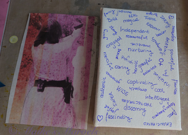 As always, I infused the background with words, in this case all the words associated with women.