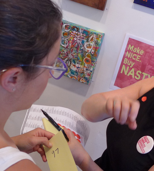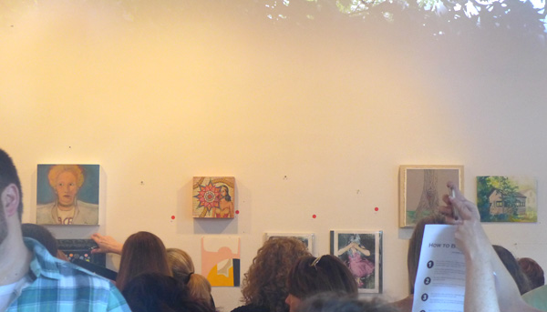 I didn’t get to see my piece earn a red dot before I had to leave for another engagement, but what didn’t sell Saturday can be viewed by appointment at 1100 Florence for the next 30 days.