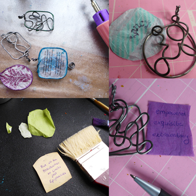 Someone posted Isaiah 55:12 in a piece of their work, so I went to my art Bible and ripped that page out for a pendant.