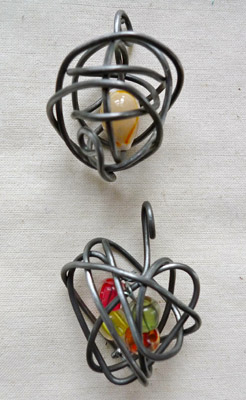 So I am working with beads and string and other found objects to create new designs that won’t be so sensitive to an outdoor setting. It’s been fun to sift through my collections and reflect back on teenage years when my cousin and I went bead-crazy.