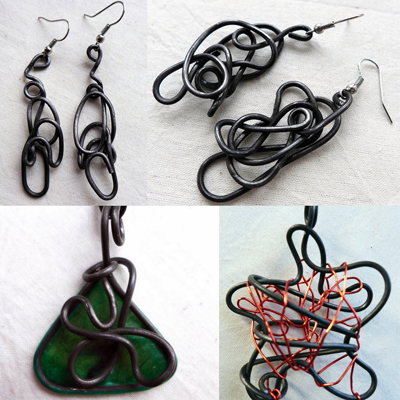 At other NEW events I wore Orange You Dancing with Smashed Earrings and a brown version of this green wax and wire triangle along with another set of abstract earrings.
