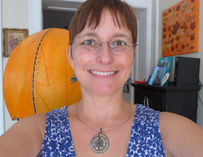 I felt the need for some inner peace one day and paired blue scribble ball earrings with this wax and wire peace symbol pendant. In the background is the jellyfish lamp from Peaceful Parlour.