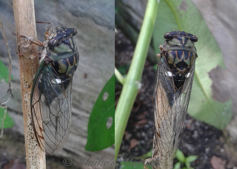 I spotted a cicada near the caterpillars as well. For a moment I worried about the food chain, but the cicada just cared about the plant’s sap.