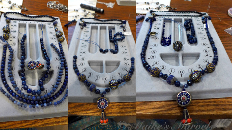 While I feel a bit frenzied right now, I did take time with a friend to bead a lapis necklace the weekend after my birthday.