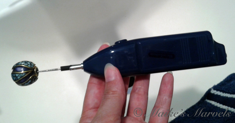 I had to fix a hole in one of the beads. Good thing my cousin just gifted me a reamer for my Birthday! I looked through my findings but don’t have anything to match, so a trip to Ayla’s is in store soon.