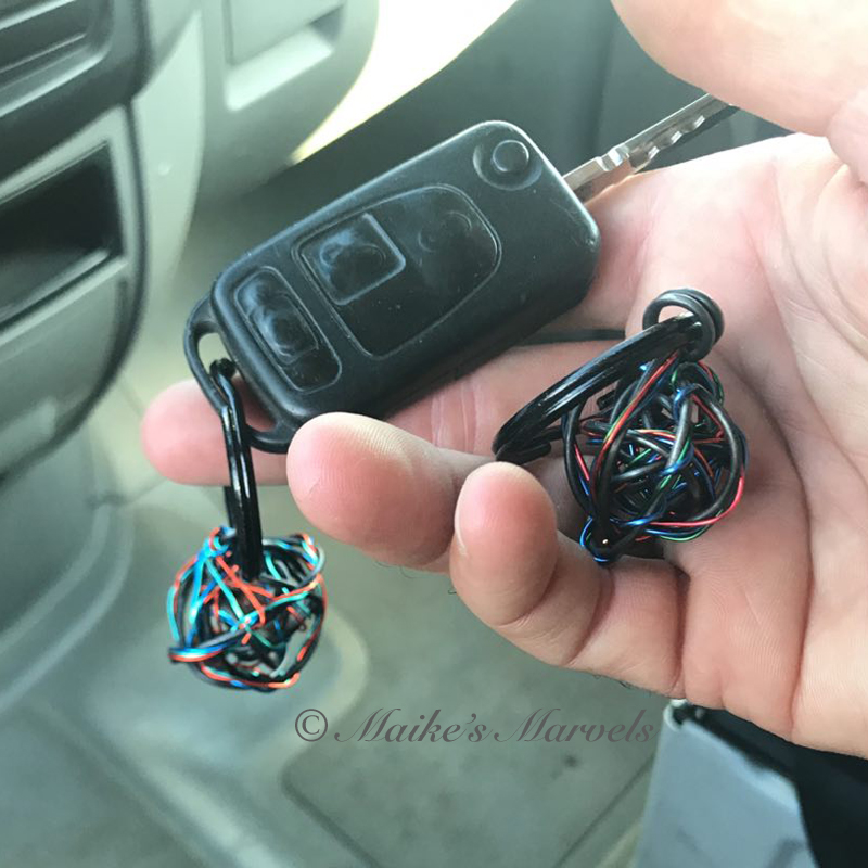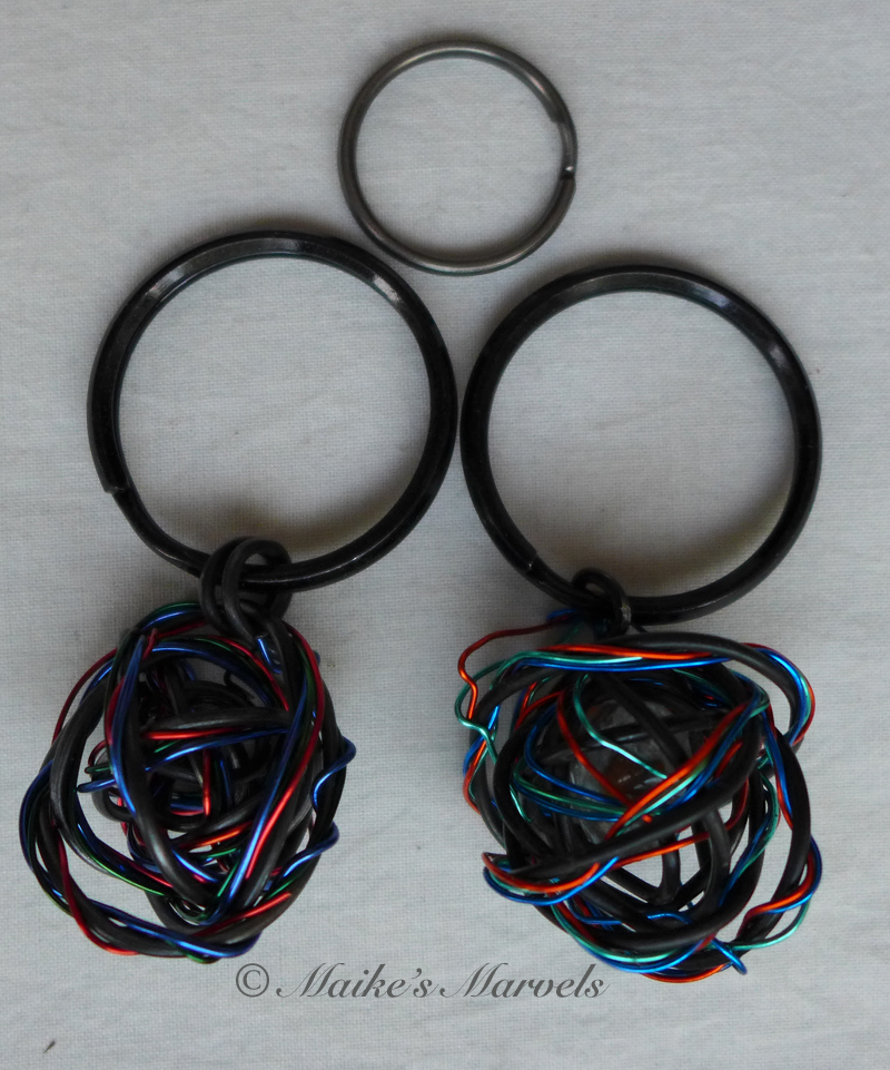 My brother asked me to make him new keychains. He wanted the elements of air, fire and water represented, so we agreed on colors and I wrangled the wire.