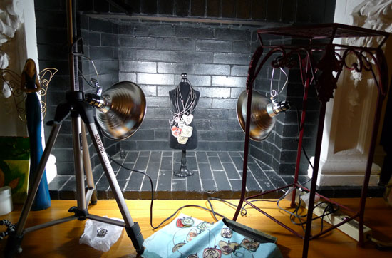 Equally fun but more time consuming are model shots. I learned that the light changes rapidly between necklace changes, and that half of my shots had a shadow of my tripod on my shoulders.