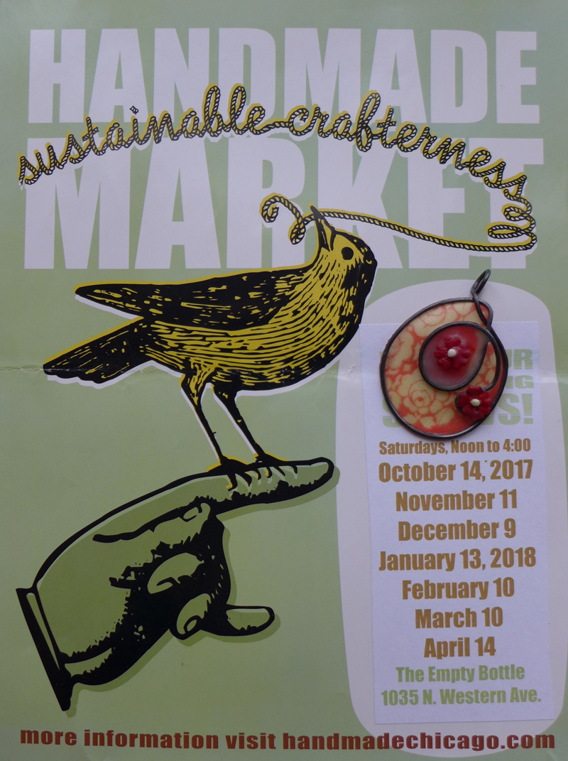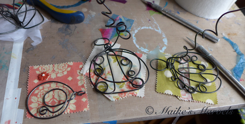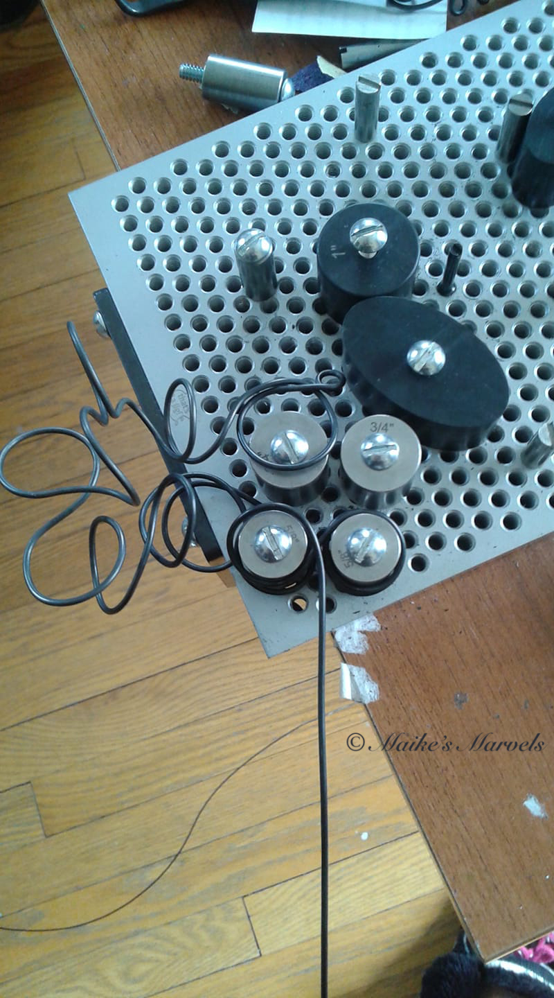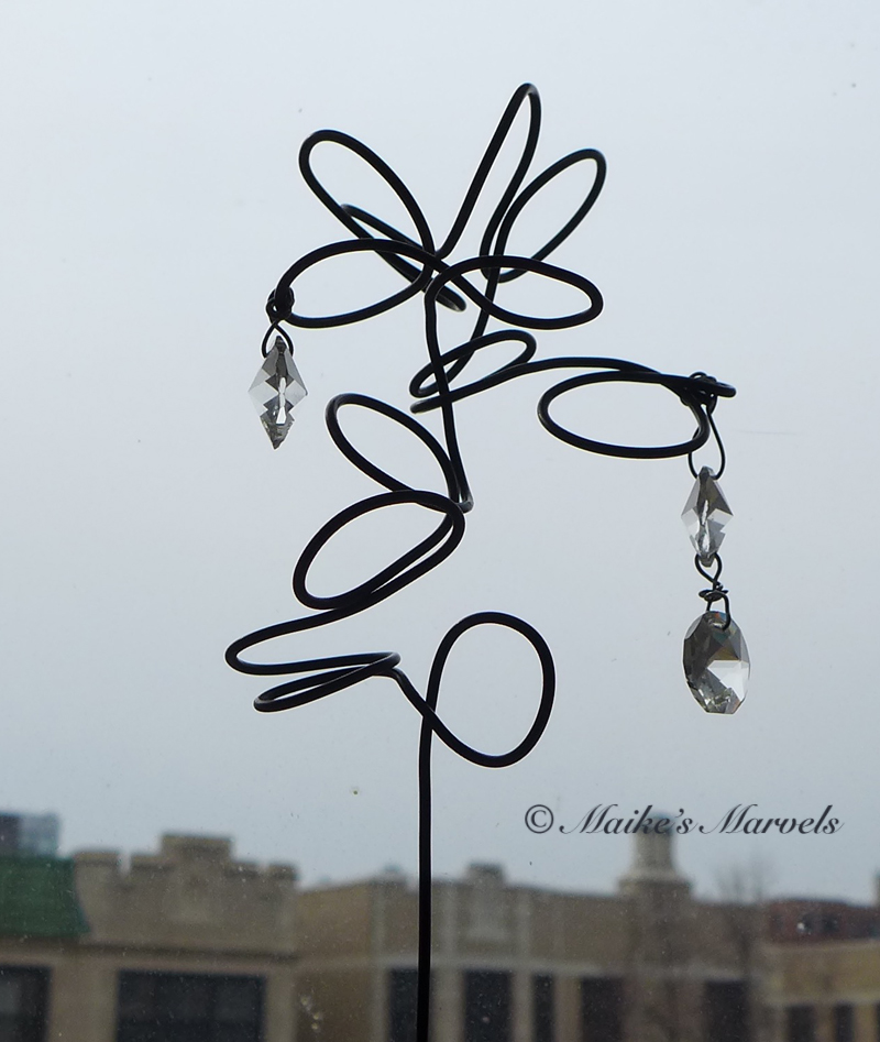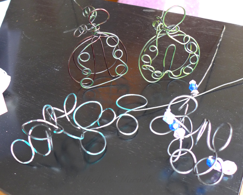 I have placed most of them at The Evanston Pop Up Gallery, and a few larger ones are at Green Edens Horticultural Services, which meant I had ‘sold out’ of ladybugs and dragonflies in my personal stash. So I started playing on Now That’s a Jig to replenish for the Handmade Market on Saturday. A few were bent into abstract shapes.