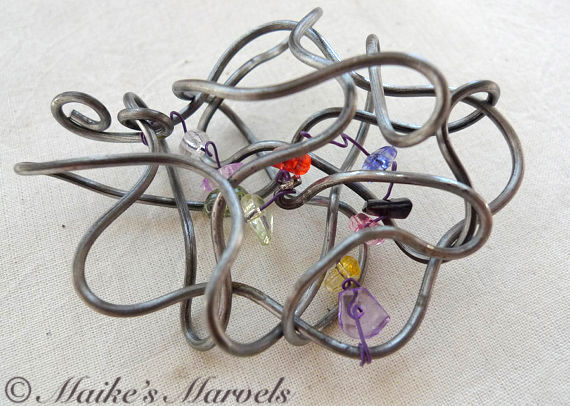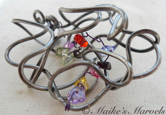 This floral squiggle with crystal filling sparkles with 5mm multicolored multifaceted crystals and is a perfect match for the abstract jewelry lover.