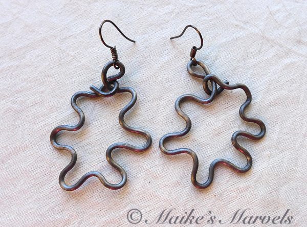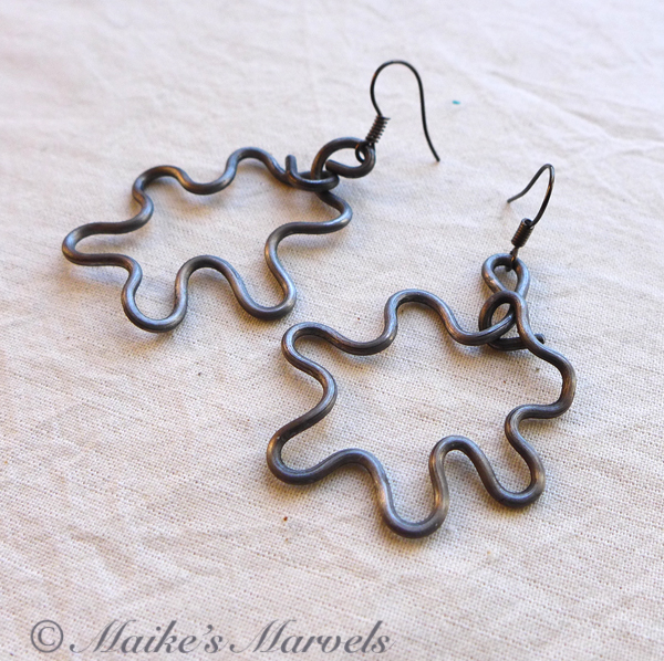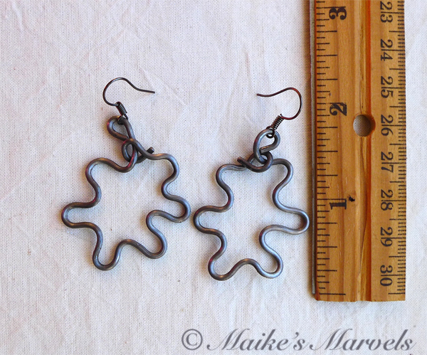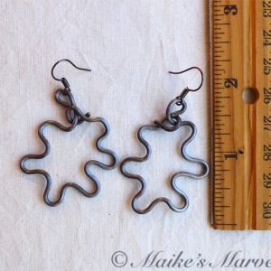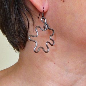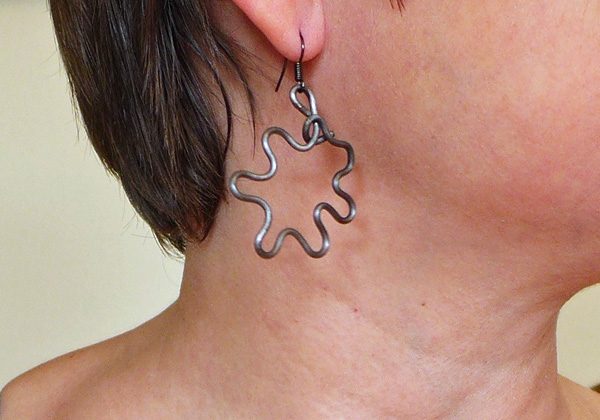 Exhibit your flower power with these funky earrings. I bent a wavy pattern out of steel wire and then formed a circle with it, leading to this floral-looking pair of earrings. The earrings have a base metal earring hook.
