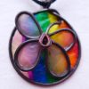 The lightweight pendant measures 1 1/2 inches wide by 2 inches long and comes with a black satin necklace cord.