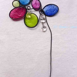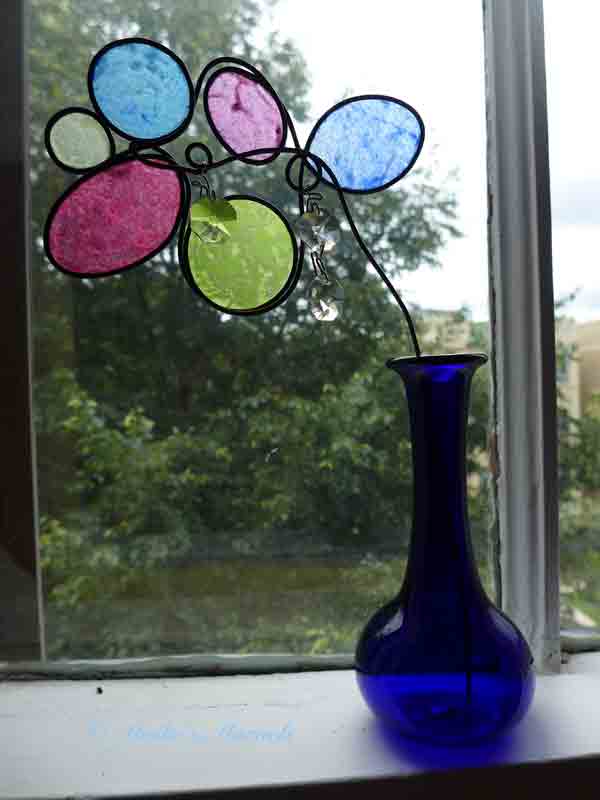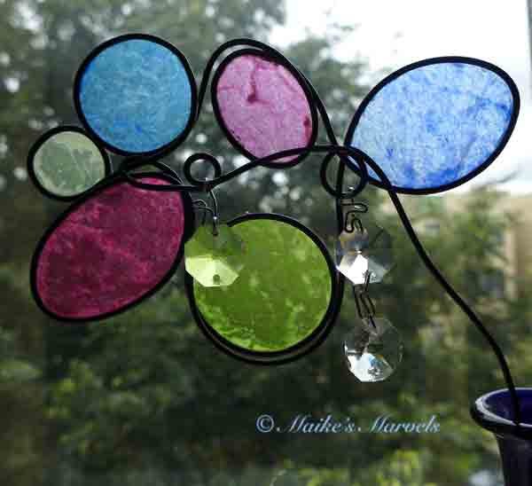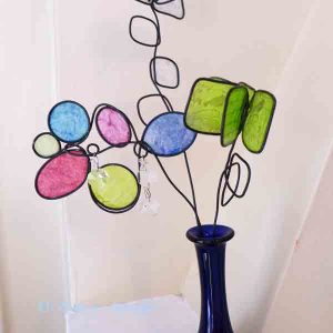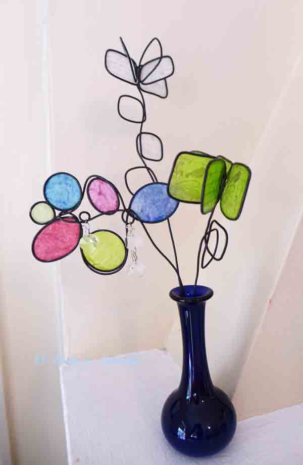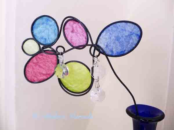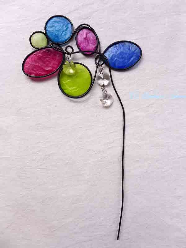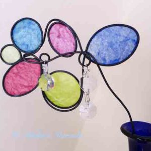 Last summer I decided to expand on my swarm with plant stakes, and as I went along other shapes emerged. This plant stake evolved out of using Now That’s A Jig! Shapes and then adding crystals to them.