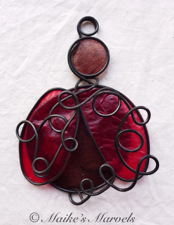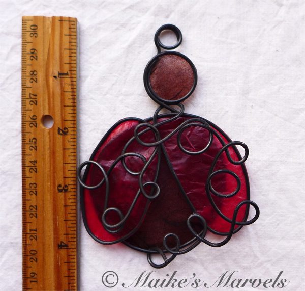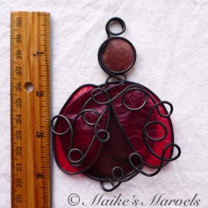 The wax and wire ladybug can be hung as an ornament on a door, in a window, or as a holiday decoration. This hand made steel wire angel measures 4 1/4 inches tall by 3 inches wide. Steel wire has been hand-bent into the ladybug shape. Following that, brown and red handmade paper was attached to the back with encaustic medium. This bug comes with a red satin ribbon for hanging, along with a green ornament hook in case you want to combine it with other creatures.