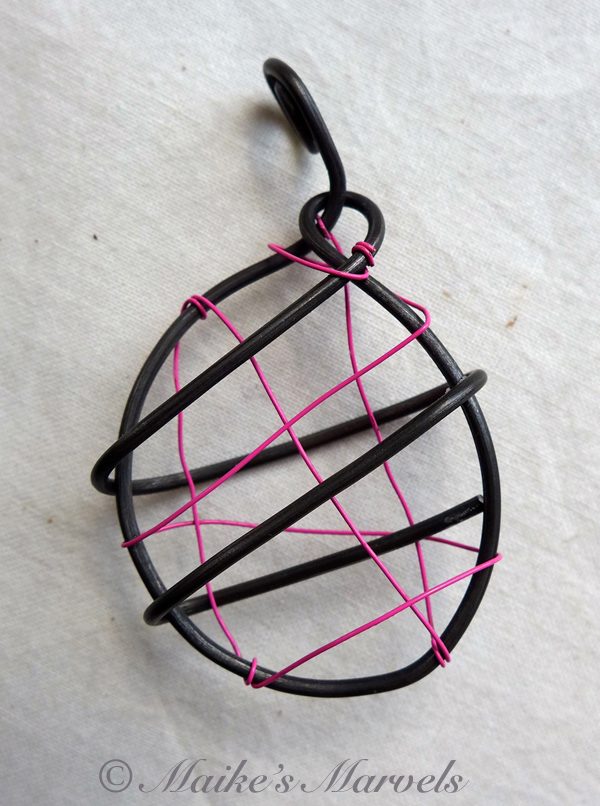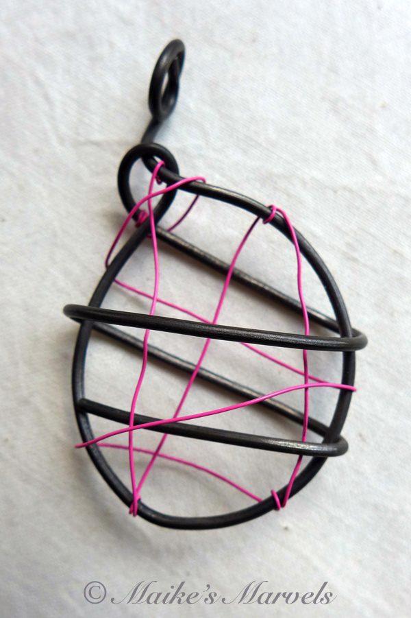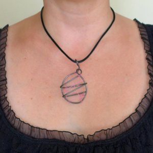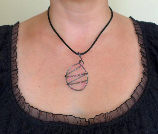 Think Pink with this pretty oval shape made from steel wire that is wrapped with hot pink decorative wire. The pendant adds a pop of color and modernism to your outfit, and will delight women and girls alike.
