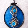 The pendant measures 2 1/2 tall by 2 inches wide and 1 1/4 inch deep and comes with a black satin cord.