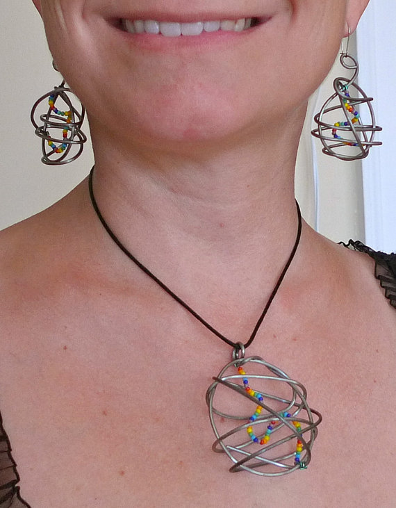 This oval beaded pendant is the perfect gift for the rainbow lover. Versatile in its colors, the spiral beaded wire inside the oval offers a cheerful accessory to your outfit.