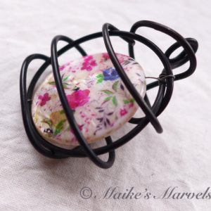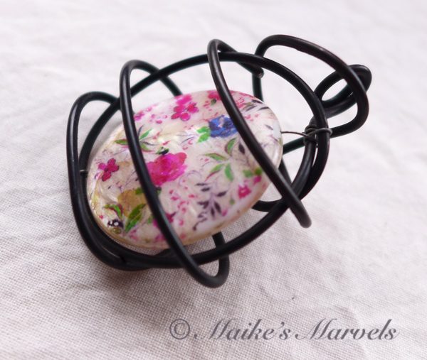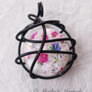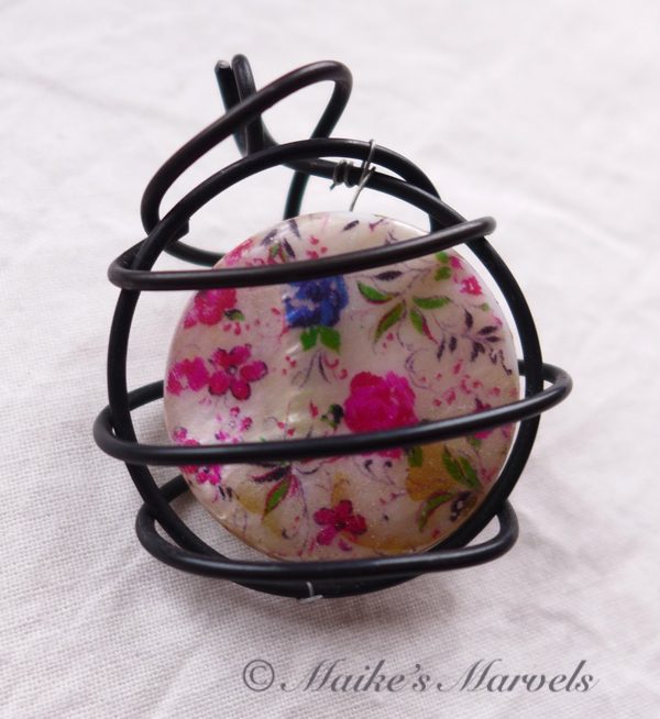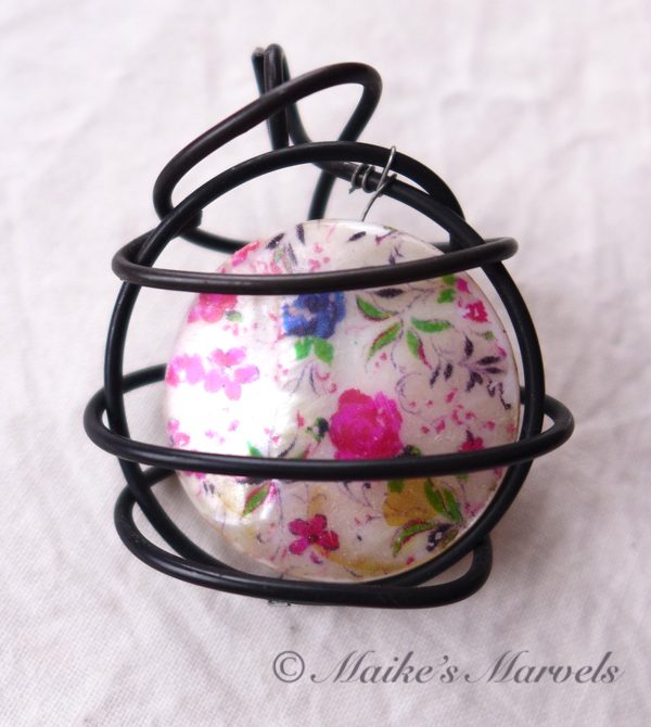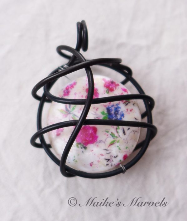I picked up a few button-y beads at the bead & button show a few years back, and this one asked to be turned into a pendant. The romantic flowers add whimsy and nostalgia to the industrial modern steel.