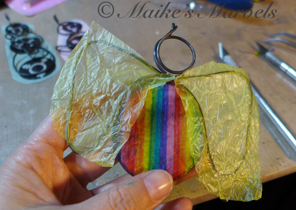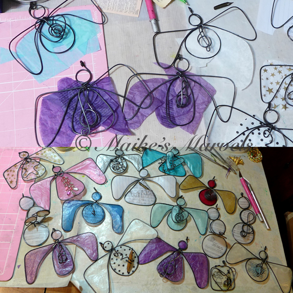 The wax was heated up to dress them in their new finery. This one almost is a superhero angel, but the cape is too fragile to keep.
