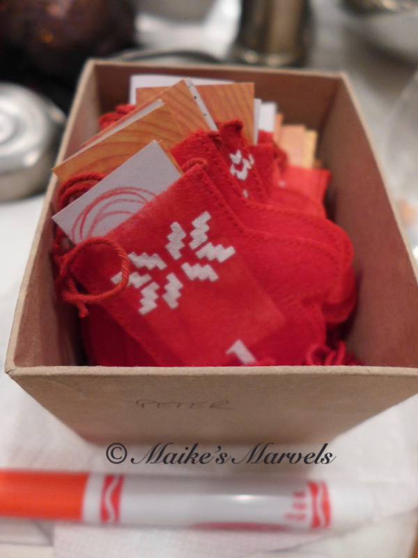 We placed each paper in a mitten, and four of us now share a daily ritual for the month of December. The box comes with preprinted daily blessings as well, so we will be able to use those next year.