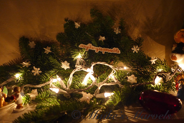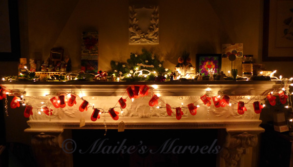 This year I’m just using what’s on the mantle already, along with lights and a few small ornaments that were easy to reach.