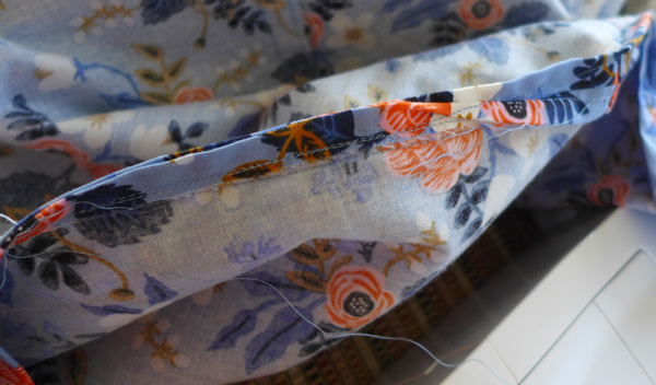 For three Wednesday evenings, four of us gathered at Evanston Stitchworks to learn to make this lovely pattern by Grainline Studio. It was hard to decide on a fabric, but with Amalia’s guidance I settled on a lovely Birch Floral Periwinkle print by Rifle Paper Company.