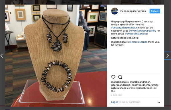 Pop Up Gallery owner Sally Beach had just been featured in Evanston Woman Magazine.