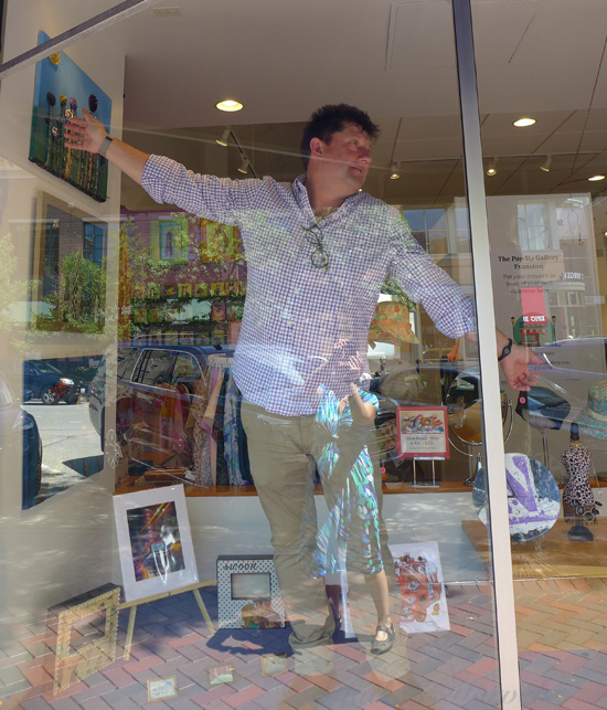 Steve made some adjustments to the window display and goofed around.