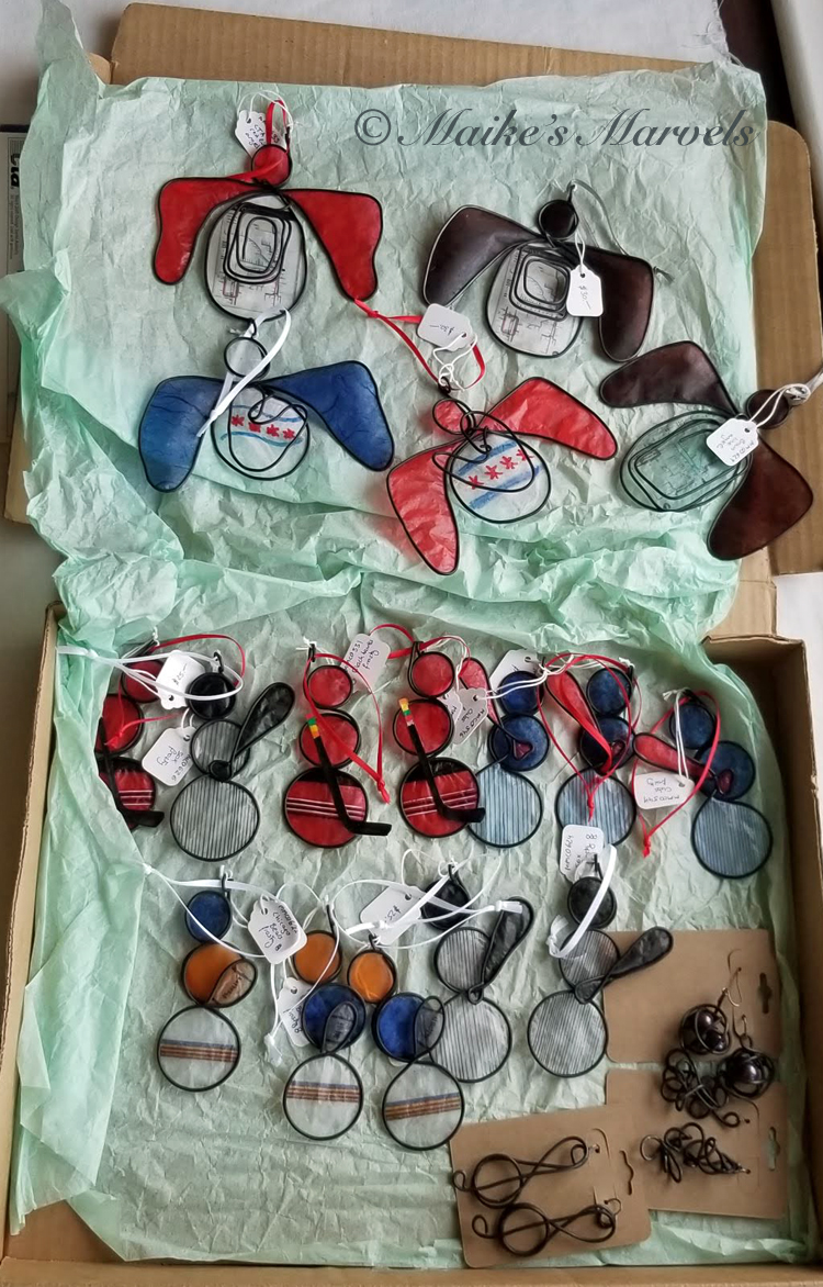 Before their trip to Show of Hands I delivered new earrings to Sacred Art Chicago, whose hours are listed above.