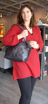 Shari of Peaceful Parlour modeled a beautiful purse made from seatbelts. She’s getting additional purses from other recycled materials in by the end of the month.