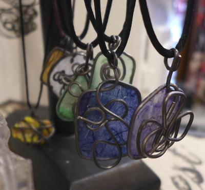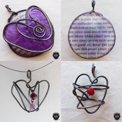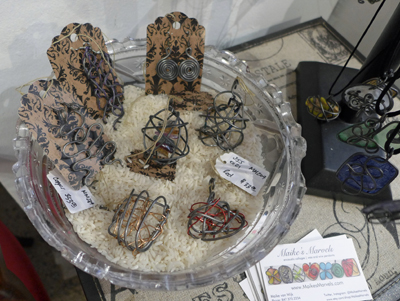 See Jane Sparkle carries my earrings, bangles, pendants and select collar necklaces, all made from steel wire and adorned with a variety of paper, beads, and stones.