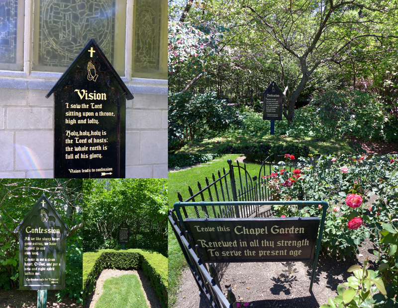 On Friday I ran errands and made my way up to the Shakespeare Garden at Northwestern. I had visited there once a long time ago. It was lovely to pause at the Chapel’s reflection stations.