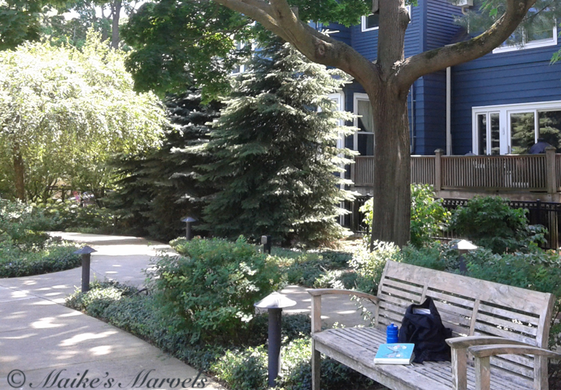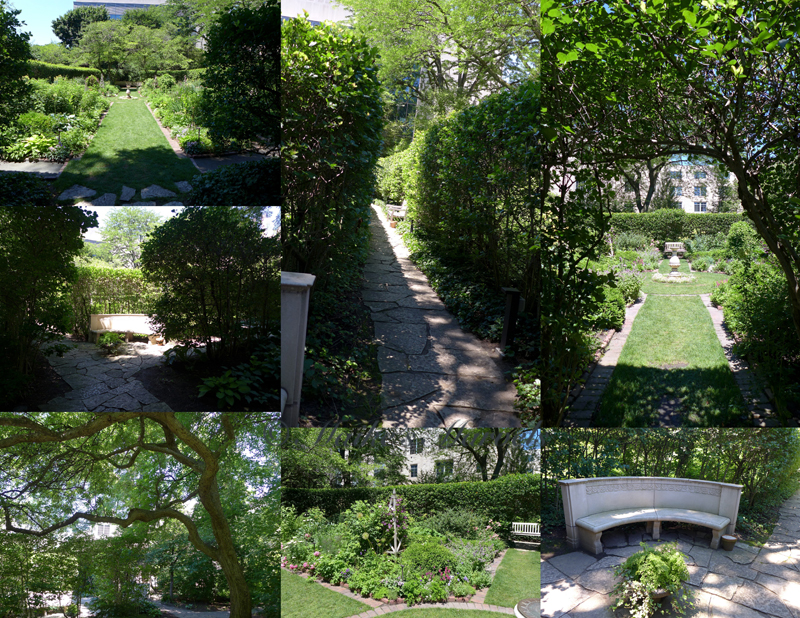 With that centering complete, I discovered lovely seating areas in the Shakespeare Garden, which was created by the Evanston Garden Club.