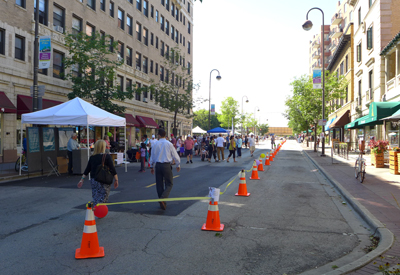 We had a big block party on Sunday. Main Street between Dodge and Hinman were transformed into a pedestrian mall from 1 to 6 p.m.