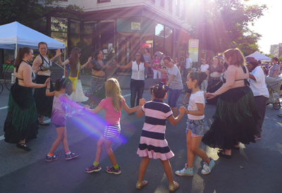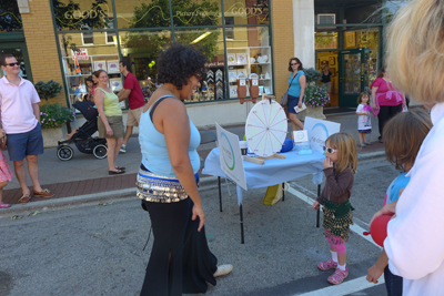 After a successful pilot project on Dempster Street in 2013, Streets Alive! was adopted by Citizen’s Greener Evanston, resulting in this year’s Main Street event. A list of all participating organizations is here. Hip Circle Studio held belly dance demonstrations.