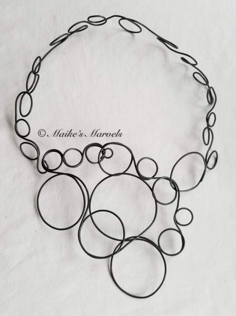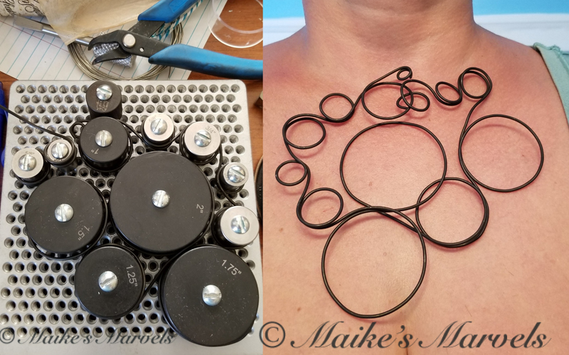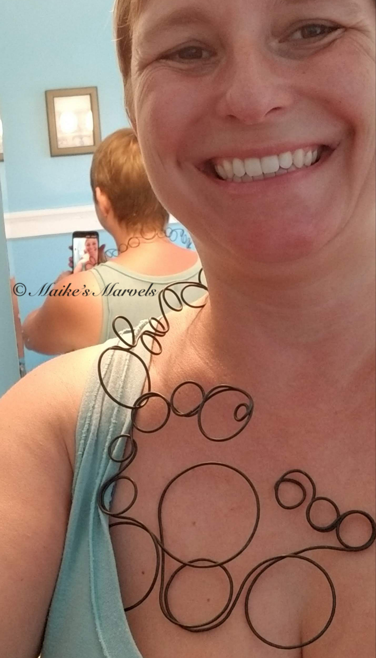 My next challenge was figuring out a necklace around it. I wanted it to be a statement piece rather than a slender collar. I used the rounds from my StartrKit to make the circles for a necklace.