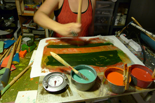 The demonstrations will include live painting, printmaking, and technique introductions by Kathleen Waterloo, Bridgette Guerzon Mills, Jenny Learner, and Dawn Korman between 1 p.m and 4 p.m. on Saturday, October 20 and Sunday, October 21. In addition Nicholas DePeder will demonstrate polaroid painting with encaustic on cigar boxes, and Madeline True will showcase photography on tiles.